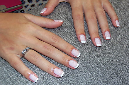 Lixe e cutile as unhas normalmente. Geralmente o corte médio e o formato quadrado são os mais indicados para garantir uma francesinha perfeita.