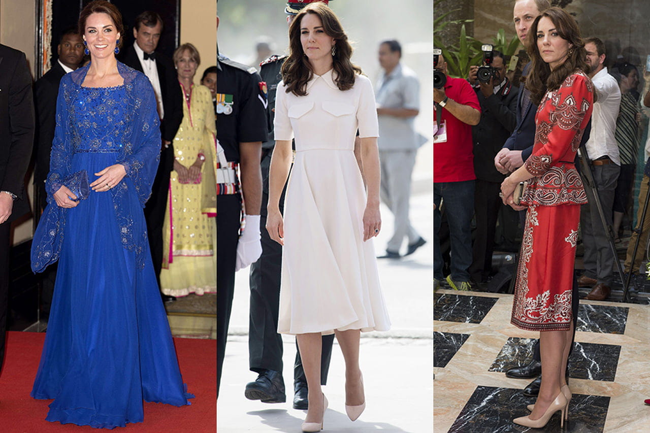 No decorrer de sua viagem à Índia, os looks usados por Kate foram destaques nos jornais e revistas de todo o mundo. Para um jantar beneficente em Mumbai, ela usou um vestido azul vibrante de Jenny Packham. Já em cerimônia para homenagear soldados indianos, ela escolheu um modelo clássico branco, assinado pela britânica Emilia Wickstead.