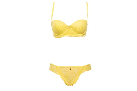 Conjunto amarelo da Intima Passion, com sutiã com bojo que valoriza os seios e calcinha transparente. Preço sugerido: R$ 110,00 (conjunto)
