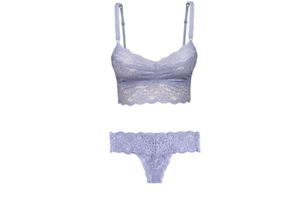Calcinha fio dental e top em renda na cor brisa da Gisele Bündchen Intimates. As duas peças trazem tons suaves e provocantes, perfeitos para momentos especiais. Preço sugerido: R$ 85,00 (top) e R$ 34,00 (calcinha)