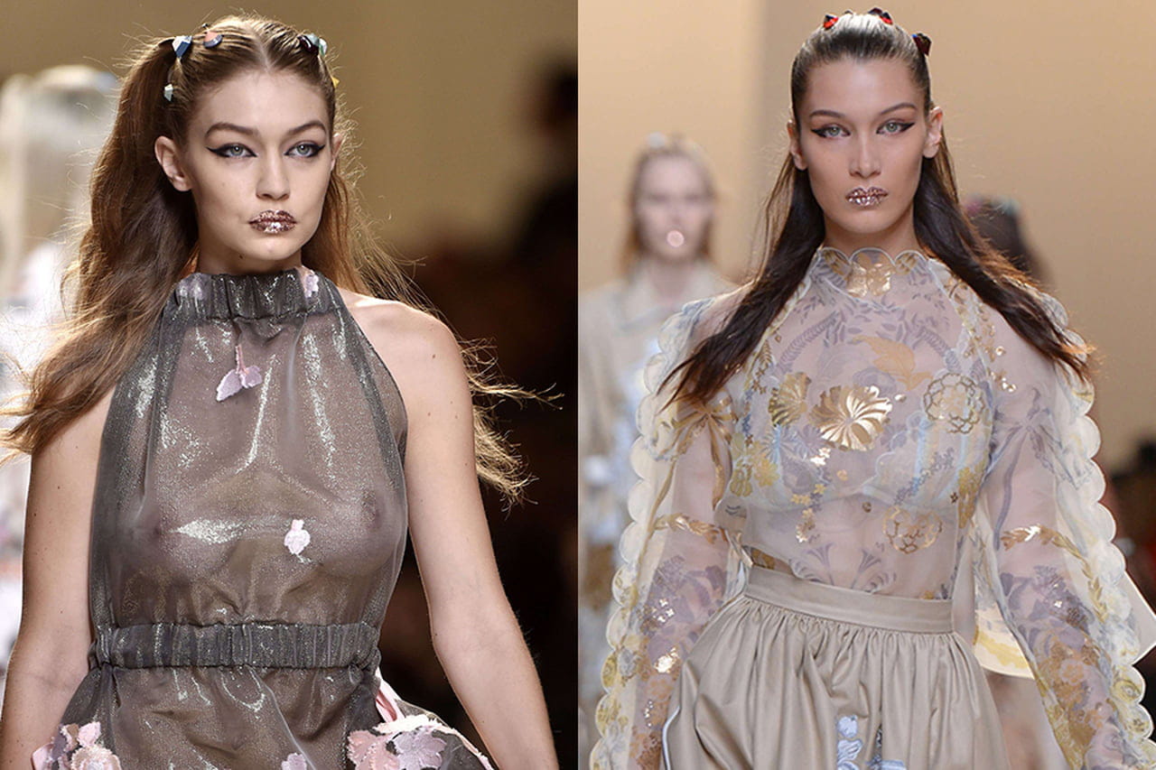 Gigi e Bella Hadid com make fabuloso no desfile da Fendi