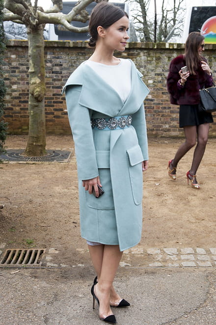 Os cintos estão em alta assim como as amarrações. Esta mulher acima, nas ruas de Londres, valorizou a cintura com um laço romântico que deixou todo o visual mais polido e sofisticado.