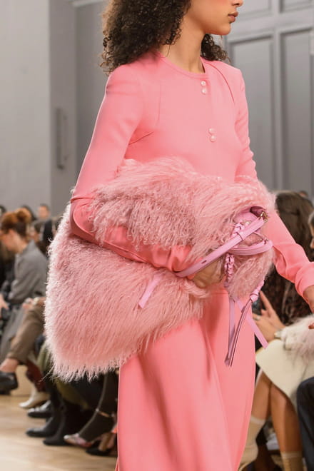 A Nina Ricci construiu uma cartela de cores que ia desde o bege, passando pelo rosa, indo até o amarelo e preto para a próxima temporada. As bolsas fluffy em material sintético conferiram um charme todo especial à linha de Inverno 2018, podendo ser usada na mão ou no ombro.