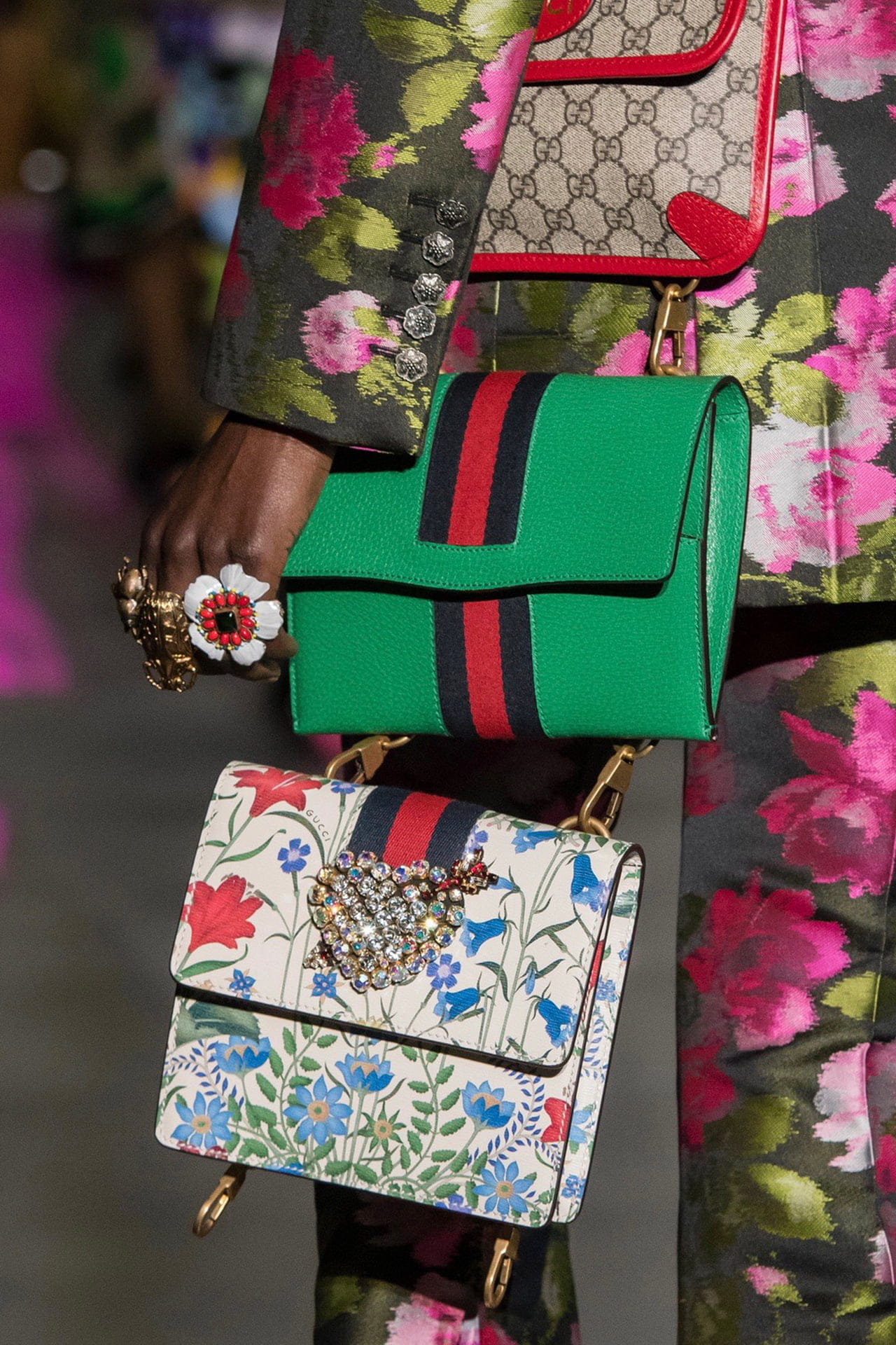 A Gucci, com seu jardim alquimista, nos transportou a um mundo repleto de símbolos místicos, falas em latim e mil e um acessórios para rechear o próximo inverno de boas vibes. As bolsas triplas fazem parte dessas inovações que Alessandro Michele gosta de introduzir em suas linhas tão aclamadas pelo público e crítica especializada.