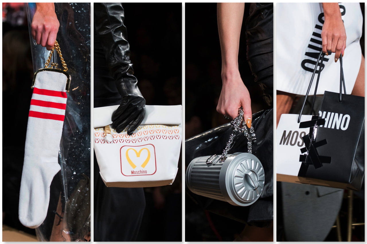 A Moschino, como sempre, inovando e gerando dúvida na cabeça das mulheres: genial ou cafona? Mas o fato é que essas bolsas da coleção de Inverno 2018 são, no mínimo, muito originais.