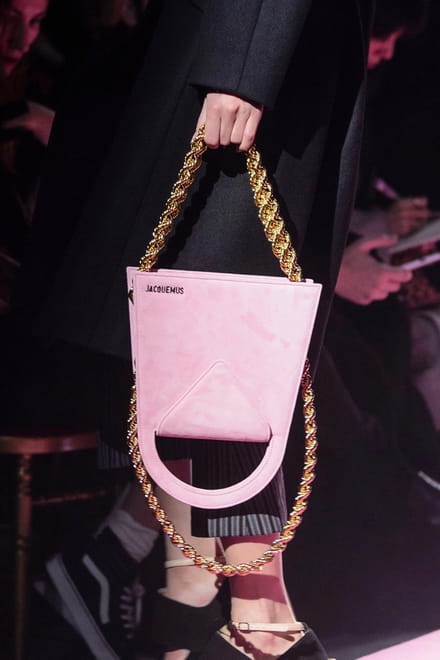 A linha inverno 2018 do francês Jacquemus foi inspirada no rosa e todas suas possibilidades em looks e acessórios. Essa bolsa de camurça rosa pálido pode ser usada normalmente ou de ponta-cabeça, as you wish!