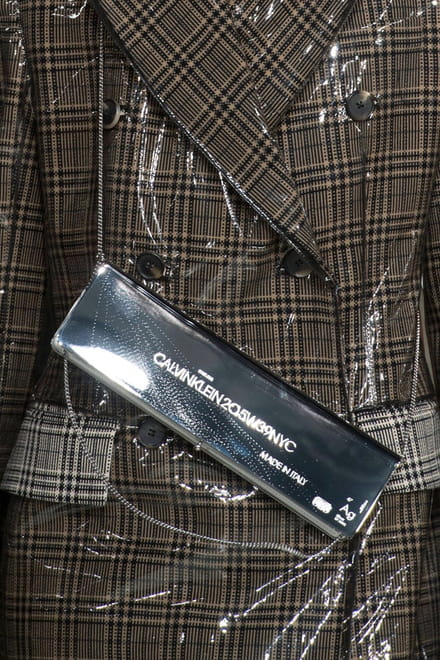 A Calvin Klein acertou em cheio com uma coleção super atual e desejável, e ainda com mensagem de protesto contra a política de segregação de Trump. Os acessórios não ficaram para trás e adotaram shapes e materiais diferentes como essa clutch em alumínio com o endereço da flagship da marca em Nova York.