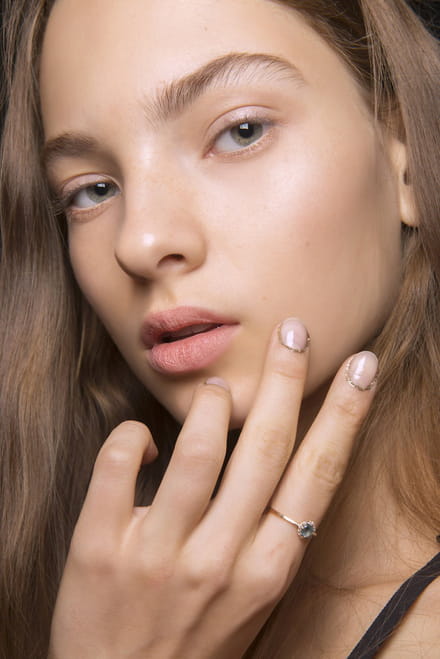 Outra maneira super atual é a proposta do desfile da Rodarte, verão 2017: uma linha discreta que acompanha o contorno inferior das unhas bem na altura das temidas cutículas - isso mesmo! O efeito é um toque de brilho comedido e, o melhor, com uma pitada de transgressão. Lembrando que, nesse caso, é ainda mais importante que as unhas estejam impecavelmente feitas, com as cutículas em dia.