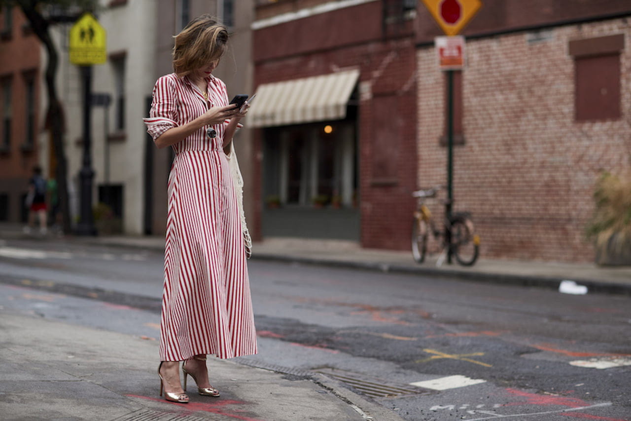 Outro clássico do closet de verão, o vestido chemise ganha cara nova graças à estampa de listras e ao comprimento longo. Invista em uma versão acinturada - ou recorra a um belo cinto para marcar a região - e um belo par de sandálias metalizadas.