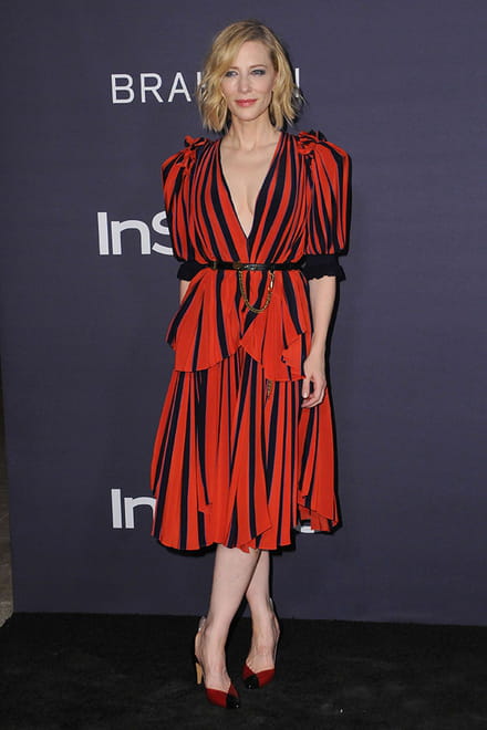 Aos 48 anos, Cate Blanchett é uma das atrizes mais premiadas da sua geração. E uma das mulheres mais bem vestidas do mundo. Em 2017, assim como nos anos anteriores, a atriz inovou em looks contemporâneos e peças incríveis, como este vestido listrado da Givenchy.