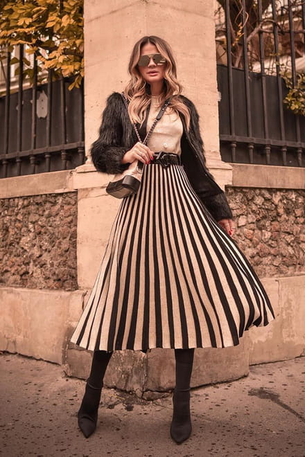 Dona de um estilo super feminino, Lily Collins arrasa em produções girlie com um toque vintage. Não é a toa que as principais marcas do mundo adoram vestir a atriz de 28 anos. Esta produção plissada em duas cores foi um dos pontos altos de Lily em 2017.