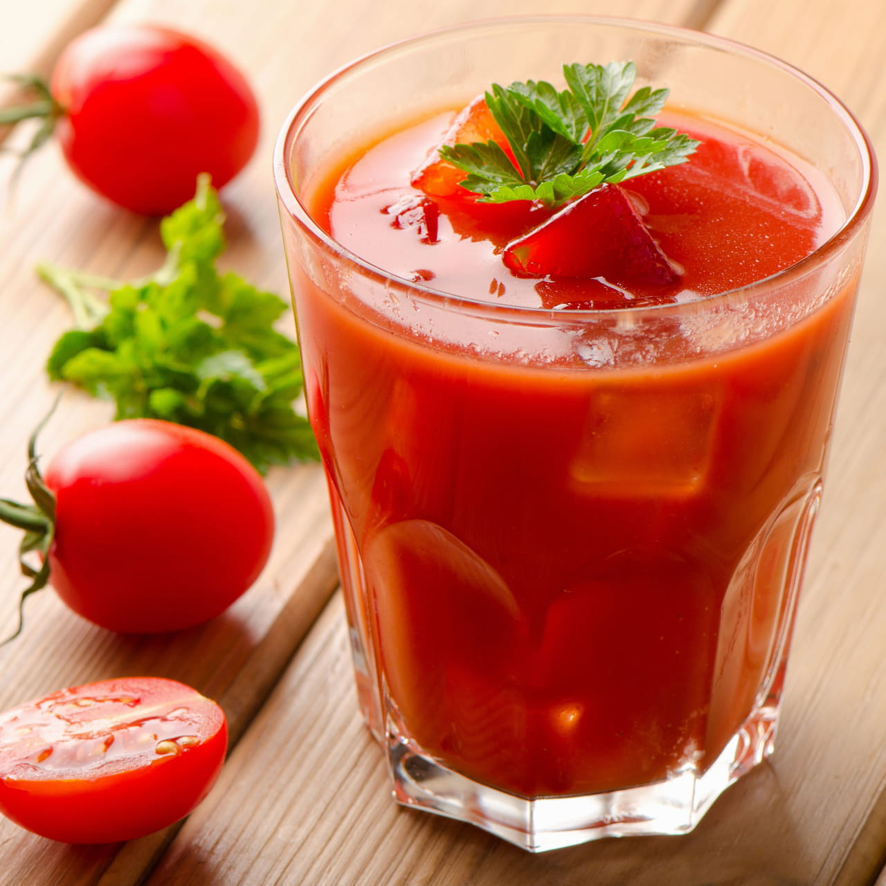 Prepare 2 litros de suco utilizando os tomates sweet grape e longa vida (o segundo, sem sementes).